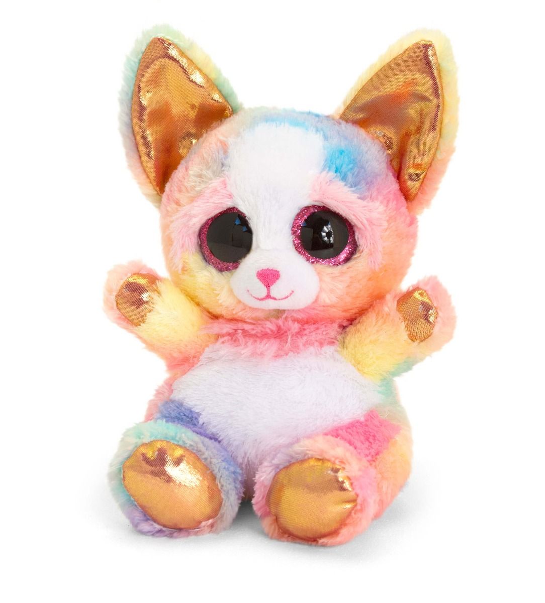 The Keel Toys Animotsu Rainbow Rose Gold Chihuahua – 15cm is a cute brightly coloured animal from Keel Toys. Sitting in its ‘Hug Me’ pose with eye catching sparkly eyes.