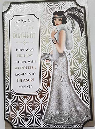 Art Deco 1920's Flapper Lady - Glittered Silver Birthday Card