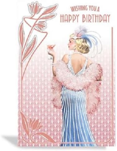 Art Deco 1920's Flapper Lady - Wishing You a Happy Birthday - Glittered & Foiled Birthday Card