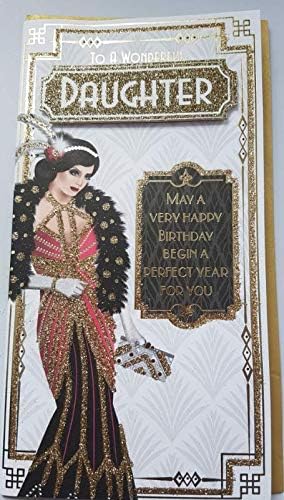 Art Deco 1920's Flapper Lady - Wonderful Daughter - Glittered Slim Birthday Card
