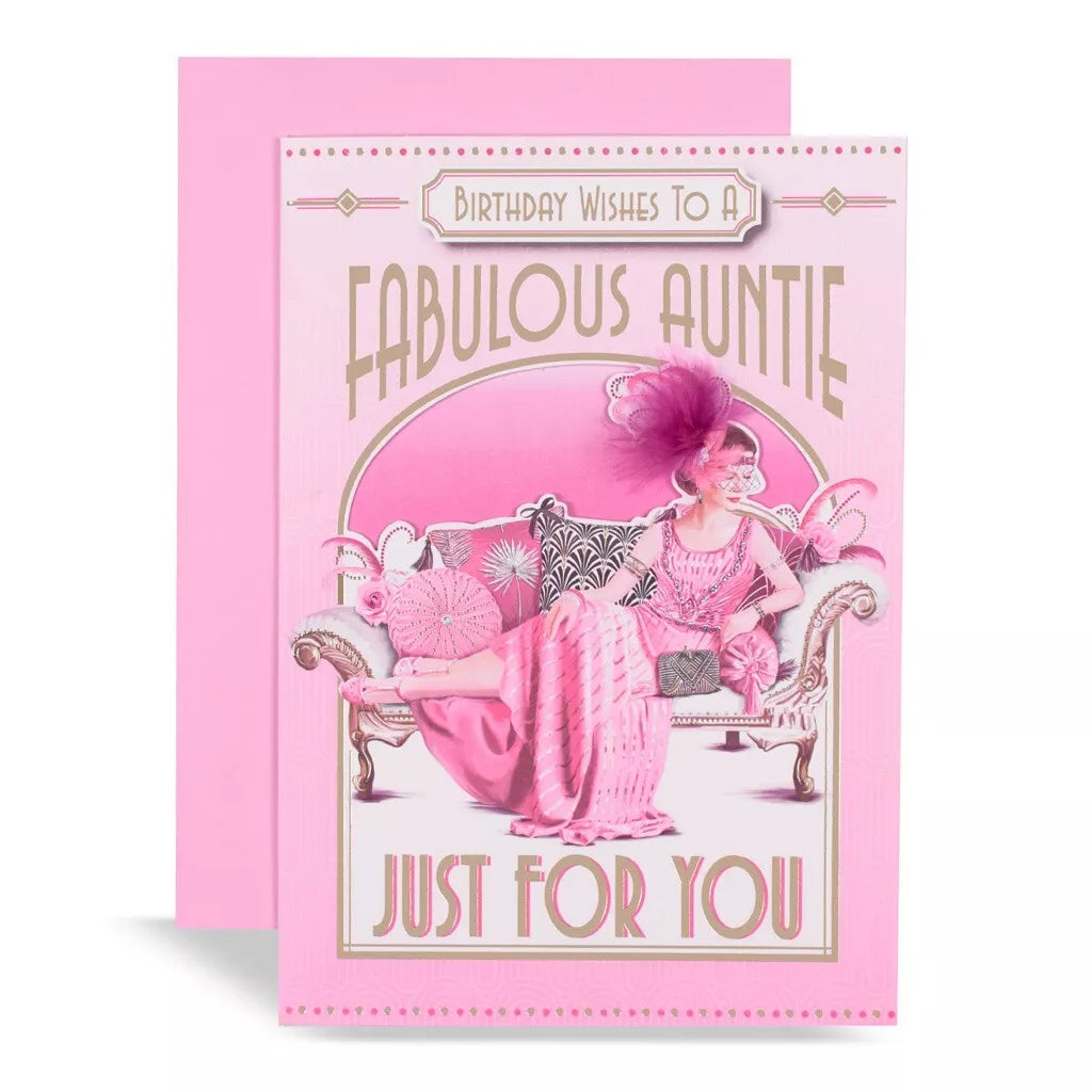 Art Deco - Auntie - Foiled Birthday Card with Feather Detail