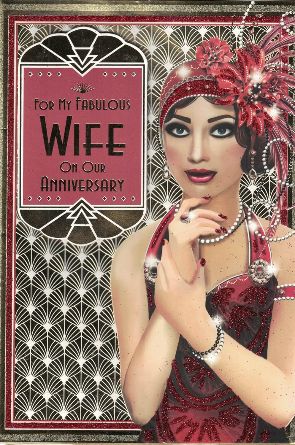 - Elegant Design: A large 18 x 25.4 cm wife art deco style anniversary card featuring a fashionable flapper lady design.