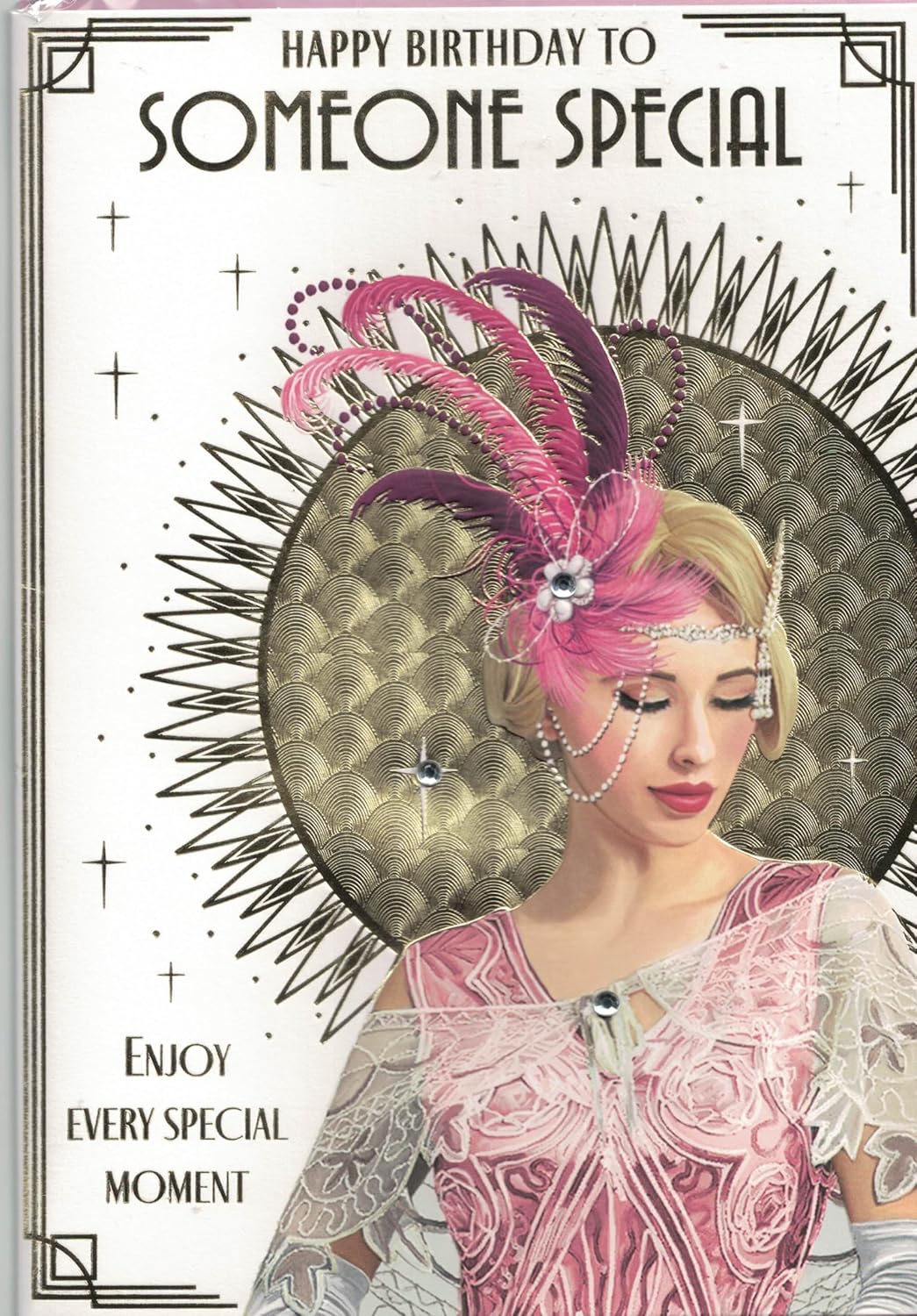 Large art deco to someone special birthday card. Flapper lady. 10 x 7 inches.