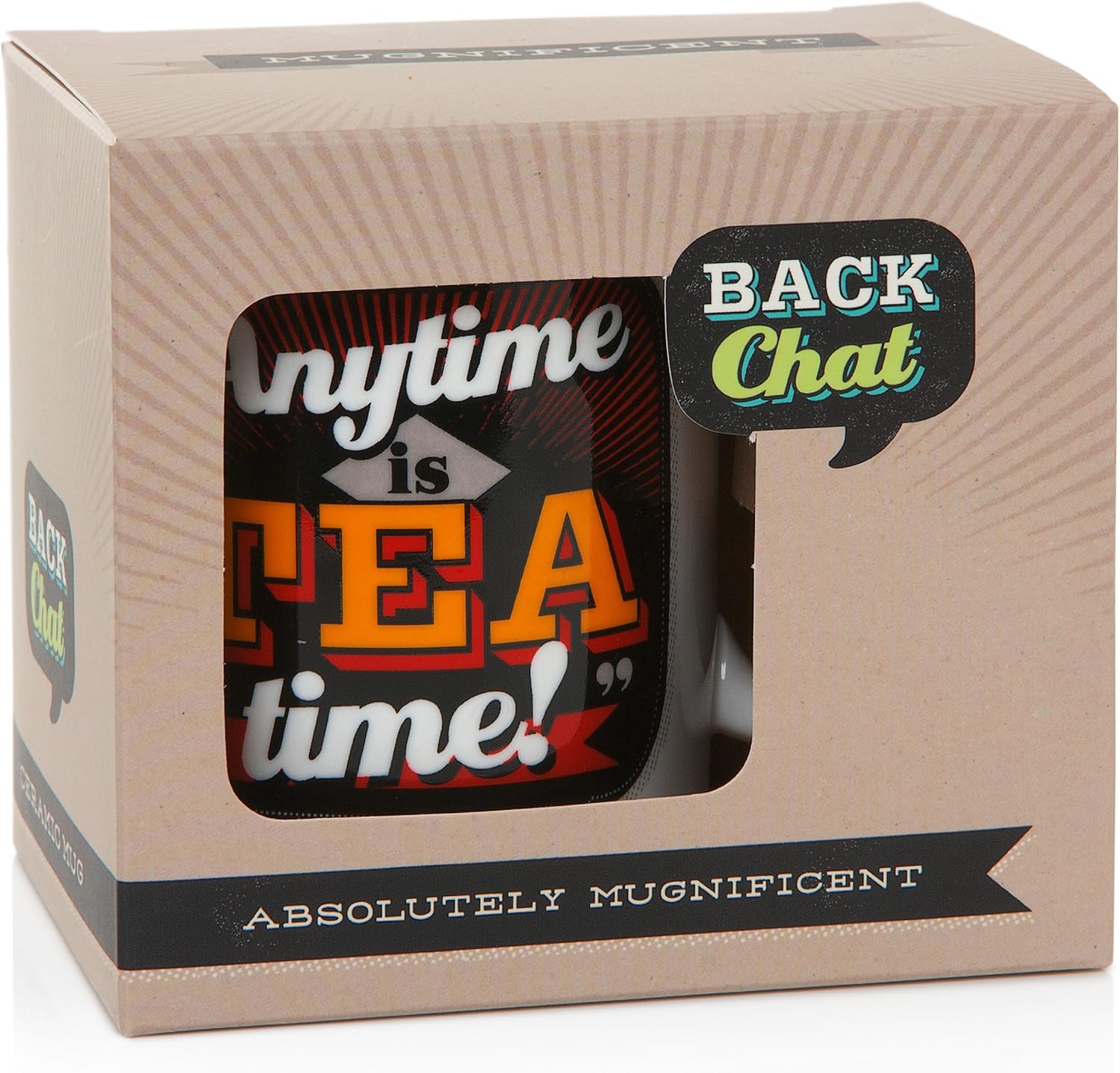 Backchat is an attention grabbing range with a cheeky sense of humour, bold graphics in a retro 50's style with universal appeal. This cool mug would make the perfect light-hearted gift for all those tea lovers out there, featuring the words 'Anytime is Tea Time' in a retro style speech bubble with bold typography which gives the gift a funky 50's style look with a modern touch. The Backchat range features fun gifts for friends and family (and for yourself too of course!) and makes the perfect birthday or Christmas gift. With retro style fonts and a colourful palette, designs are fun and quirky, yet sophisticated with witty captions and word-play.