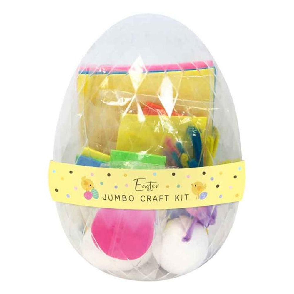 Jumbo Easter Craft Kit. Craft Pack Includes 12grams coloured shredded tissue, 15 pipe cleaners, 5 felt sheets, 2 polyfoam eggs, white glue, 8 egg foam shapes, 14 foam stickers, 1 chick craft kit & 1 bunny craft kit. This jumbo kit is perfect for Easter egg hunts, family crafting days, or even as a wonderful Easter gift.