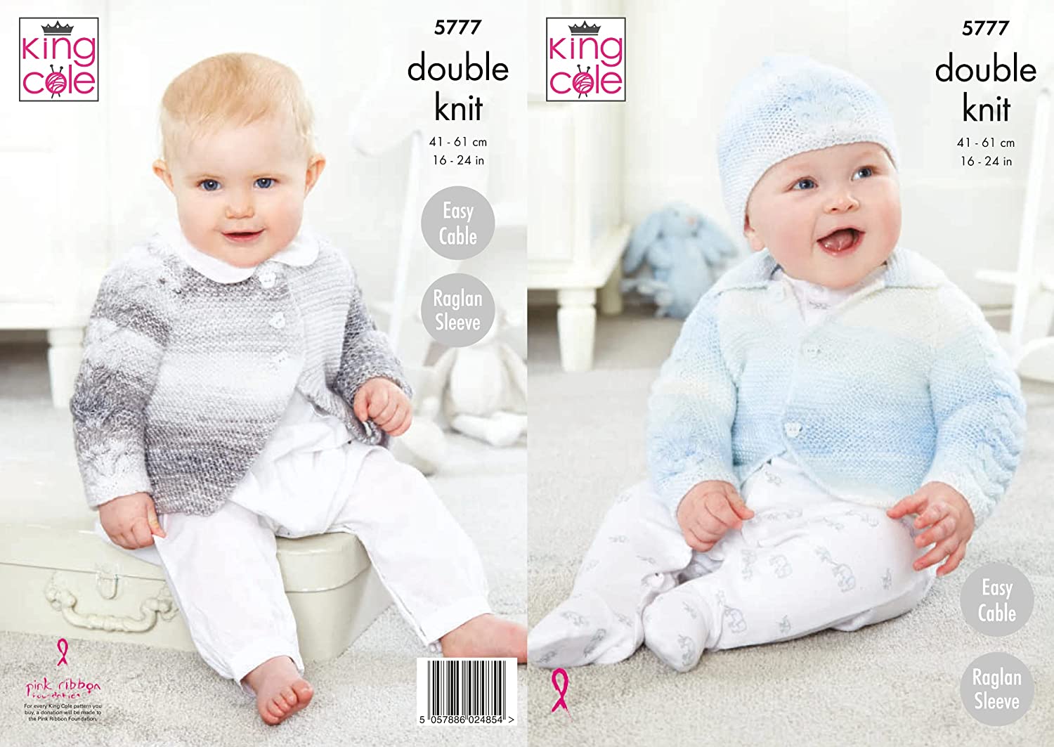 King Cole 5777 Baby DK Cardigan Hat Knitting Pattern