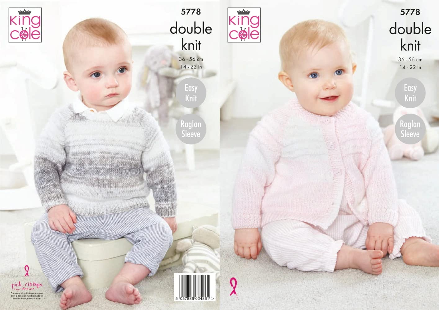 King Cole 5778 Baby DK Cardigan Sweater Knitting Pattern
