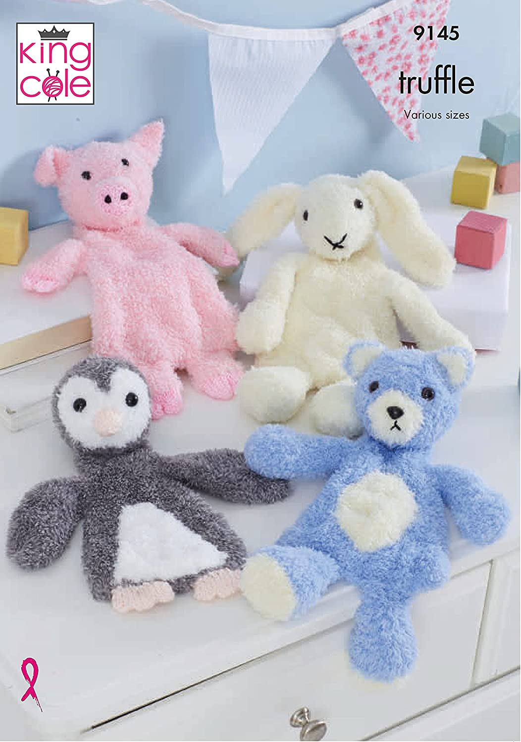 King Cole 9145 Knitting Pattern Animal Flat Snuggle Toys in Truffle