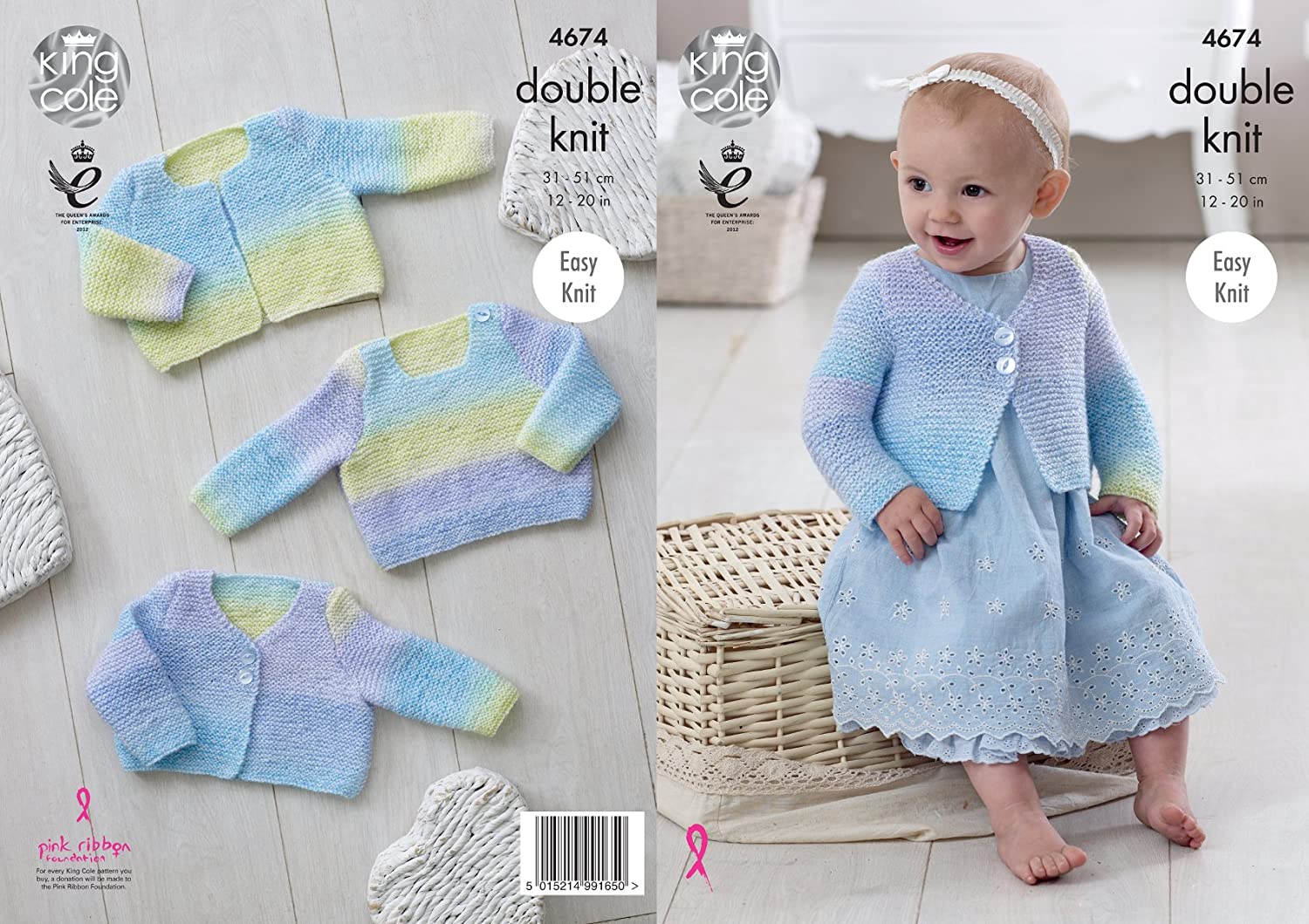 King Cole Baby DK Double Knitting Pattern Easy, Knit Sweaters & V or Round Neck Cardigans (4674)