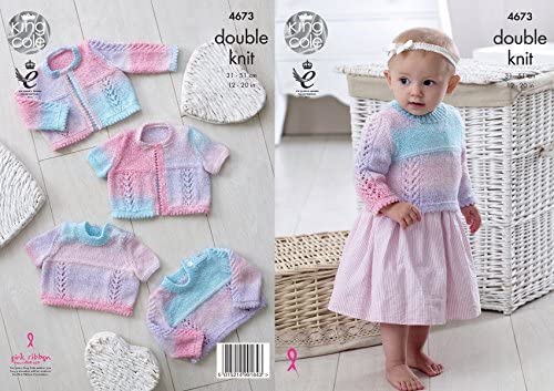 King Cole Baby DK Double Knitting Pattern Lace Long or Short Sleeved Sweaters & Cardigans (4673) by King Cole