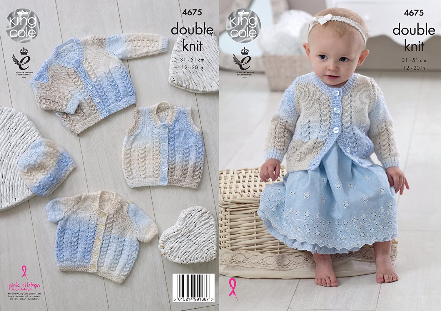 King Cole Baby DK Double Knitting Pattern Lacy Long or Short Sleeve Cardigans Waistcoat & Hat (4675)