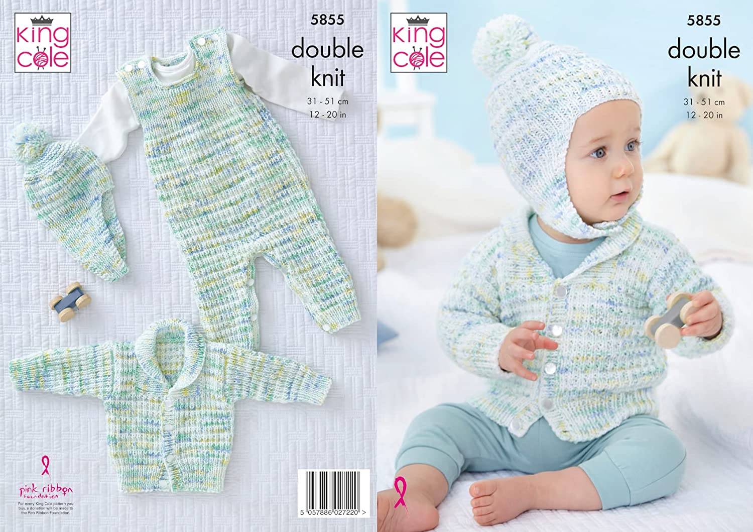 King Cole Baby DK Knitting Pattern Dungarees Jacket & Hat (5855)