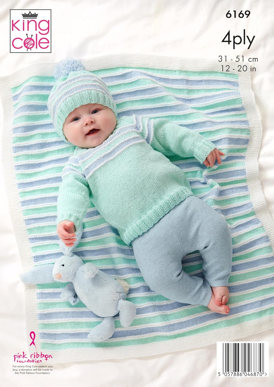 King Cole Baby Knitting Pattern Double Knit Baby Blanket, Matinee Jacket, Sweater, Bootees and Hat (6169), 12” – 20” (31cm – 51cm)