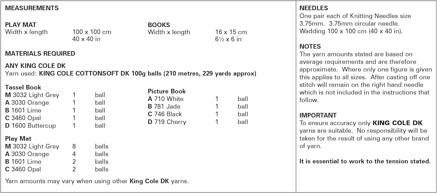 King Cole Baby Knitting Pattern Double Knit Baby Sensory Play Blanket and Tassel Books (6011)
