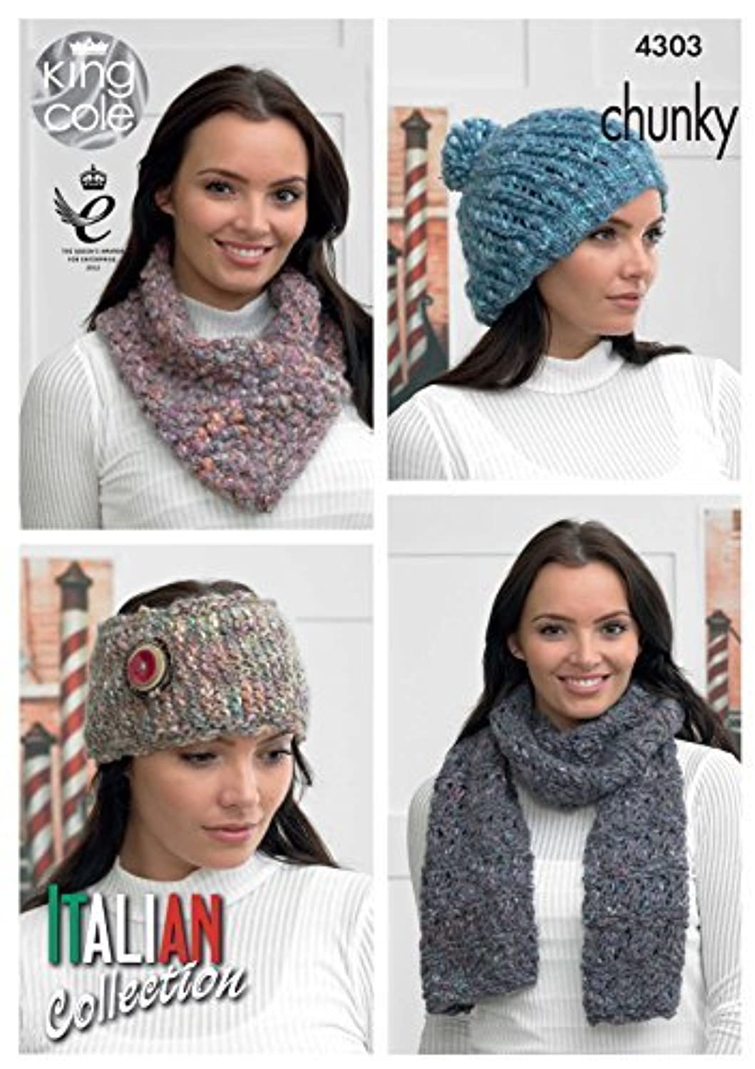 King Cole Ladies Verona Chunky Knitting Pattern Womens Hat, Scarf, Headband and Neck Scarf (4303) by King Cole