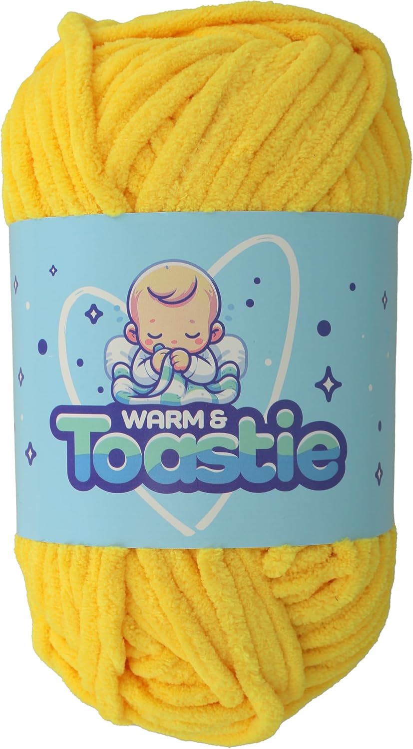 King Cole Toastie - Yellow (5987) Our super-thick and extra-snuggly Warm & Toastie yarn is here! With a fleecy texture and bright colours, this cheerful yarn is perfect for quick knits and particularly well-suited for projects aimed at children.