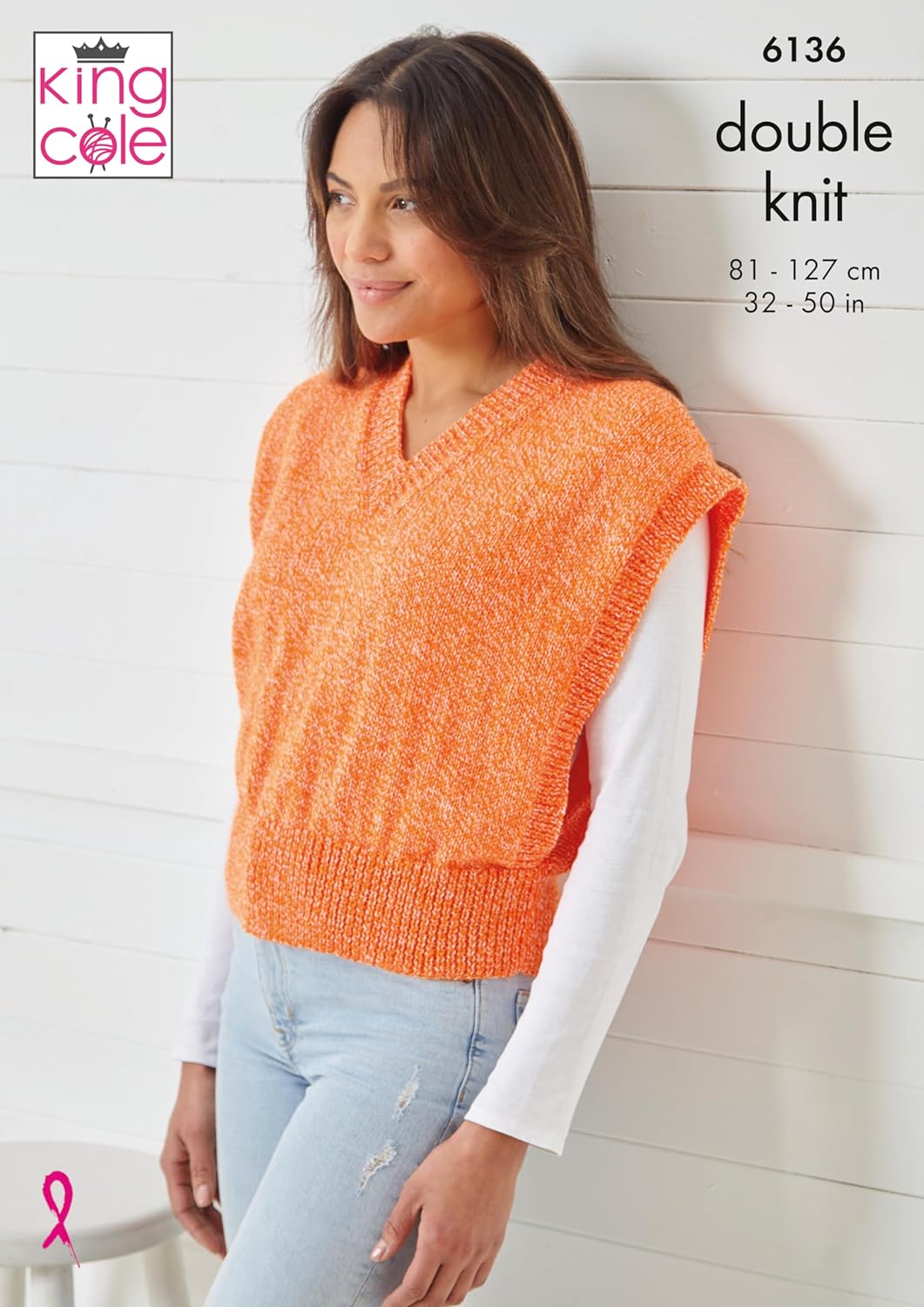 King Cole Women’s Knitting Pattern Double Knit Slipovers (6136), 32” – 50” (81cm – 127cm) Bust