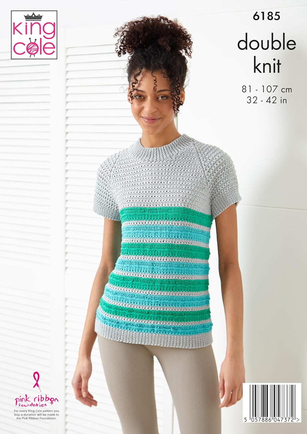 - The following designs are featured in this leaflet: King Cole Women’s Knitting Pattern Double Knit Sweater and Top (6185), 32” – 42” (81cm – 107cm) Bust