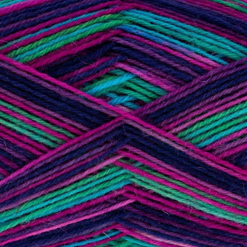 Colourful self-striping sock yarn from King Cole. Machine washable and can be tumble dried. One ball will make one pair of socks.