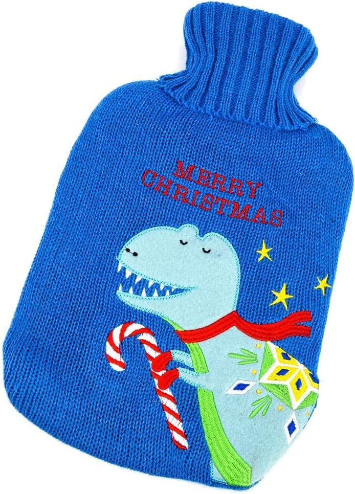 Santas Workshop Christmas Hot Water Bottle With Knit Cover - Large Dinosaur