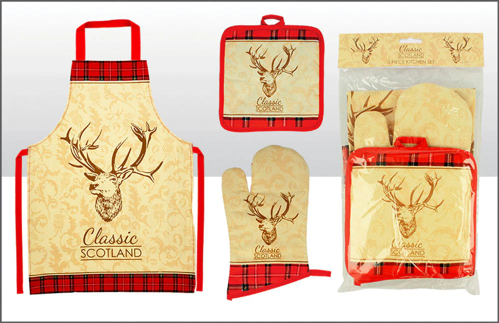 Scotland Stag Oven Mitt, Pot, Apron Set