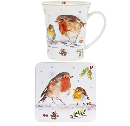 The Leonardo Collection LP52104 Winter Robins Mok en Coaster, 11x8x10cm, Boxed