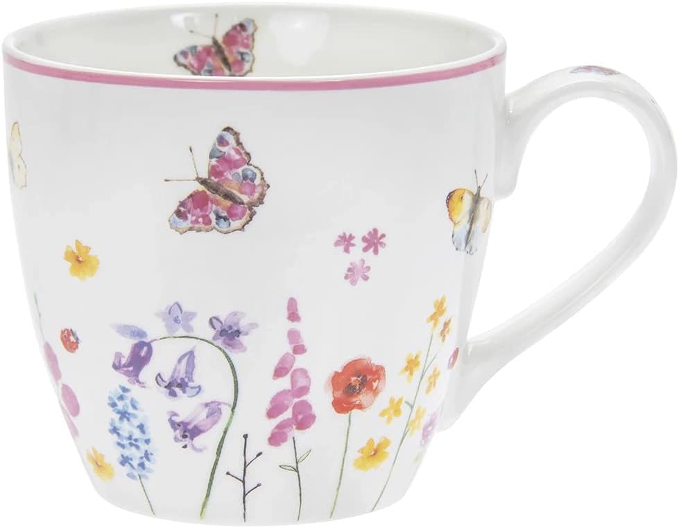 - Breakfast mug with floral Butterfly Garden design in a watercolour style