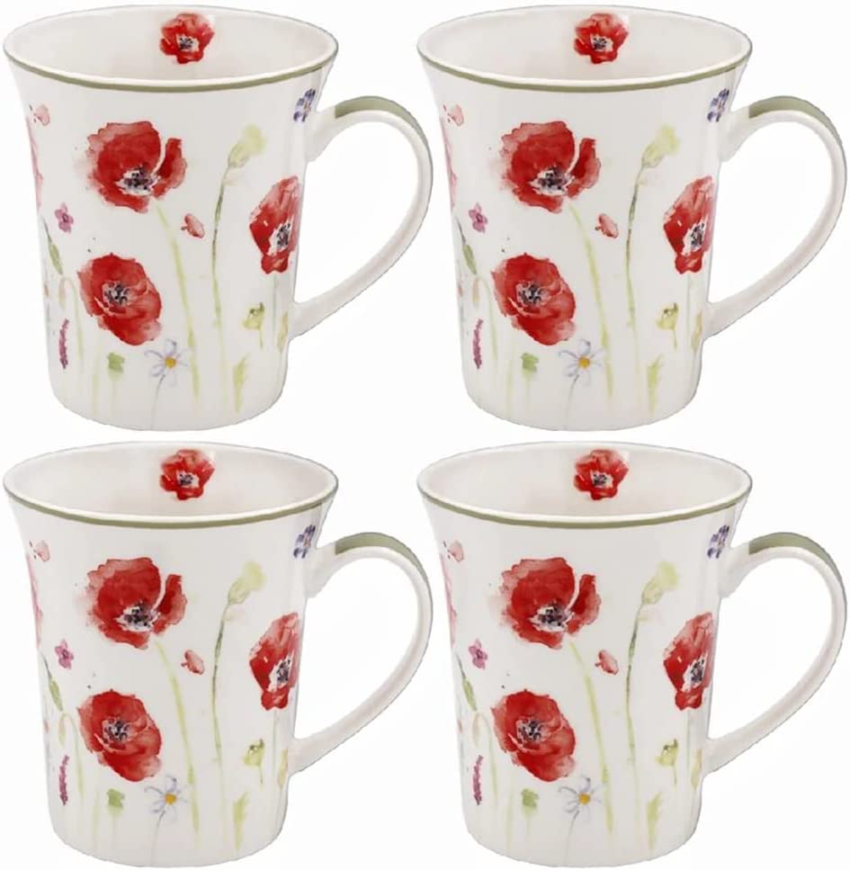 The Leonardo Collection LP94598 Poppy Field Floral Mugs (Set of 4), Fine China, Boxed