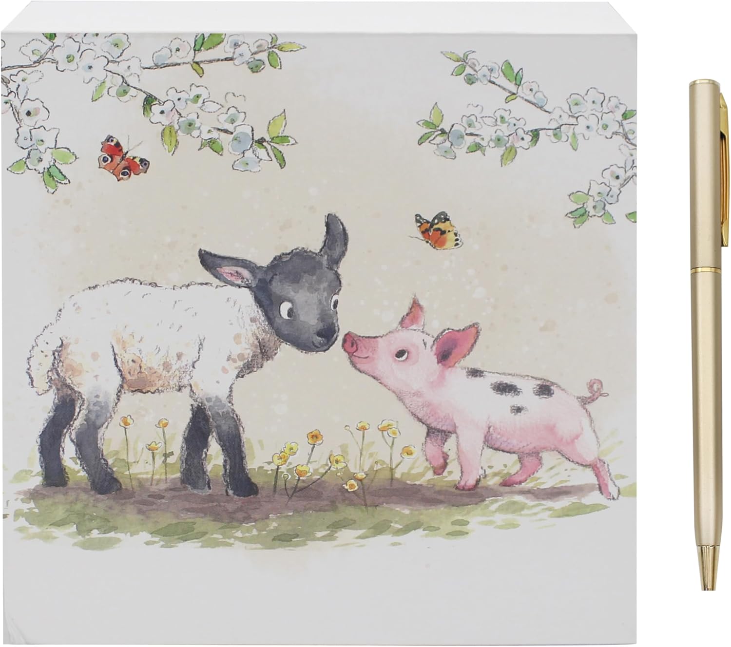 The Leonardo Collection Paper Shed Design Lamb & Piglet Memo Pad & Pen for Notes | Daily Memo for Office Use As 2025 Diary | Ideal Journals for Women & Men | Lovely Journal for 2025 Planner