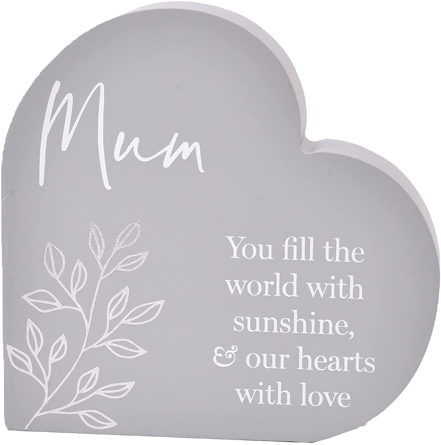 Widdop and Co Grey Heart MDF Plaque - Floral - Mum