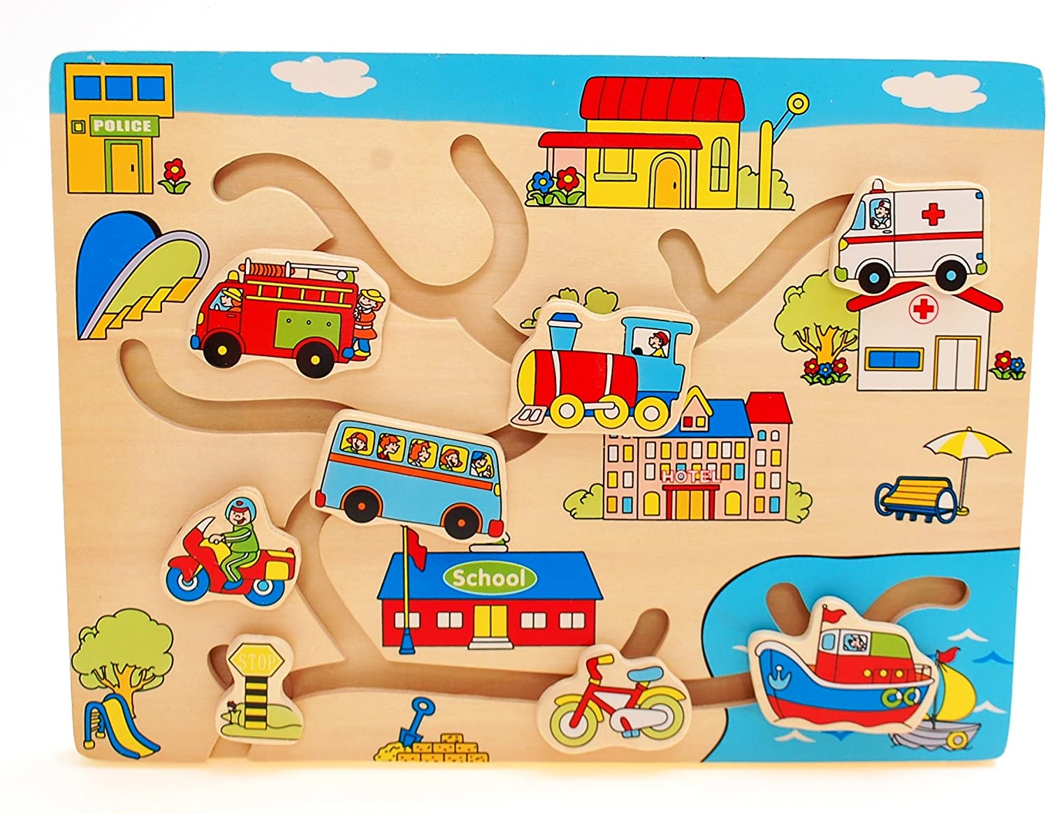 Wooden Match the Head Vehicles Puzzle