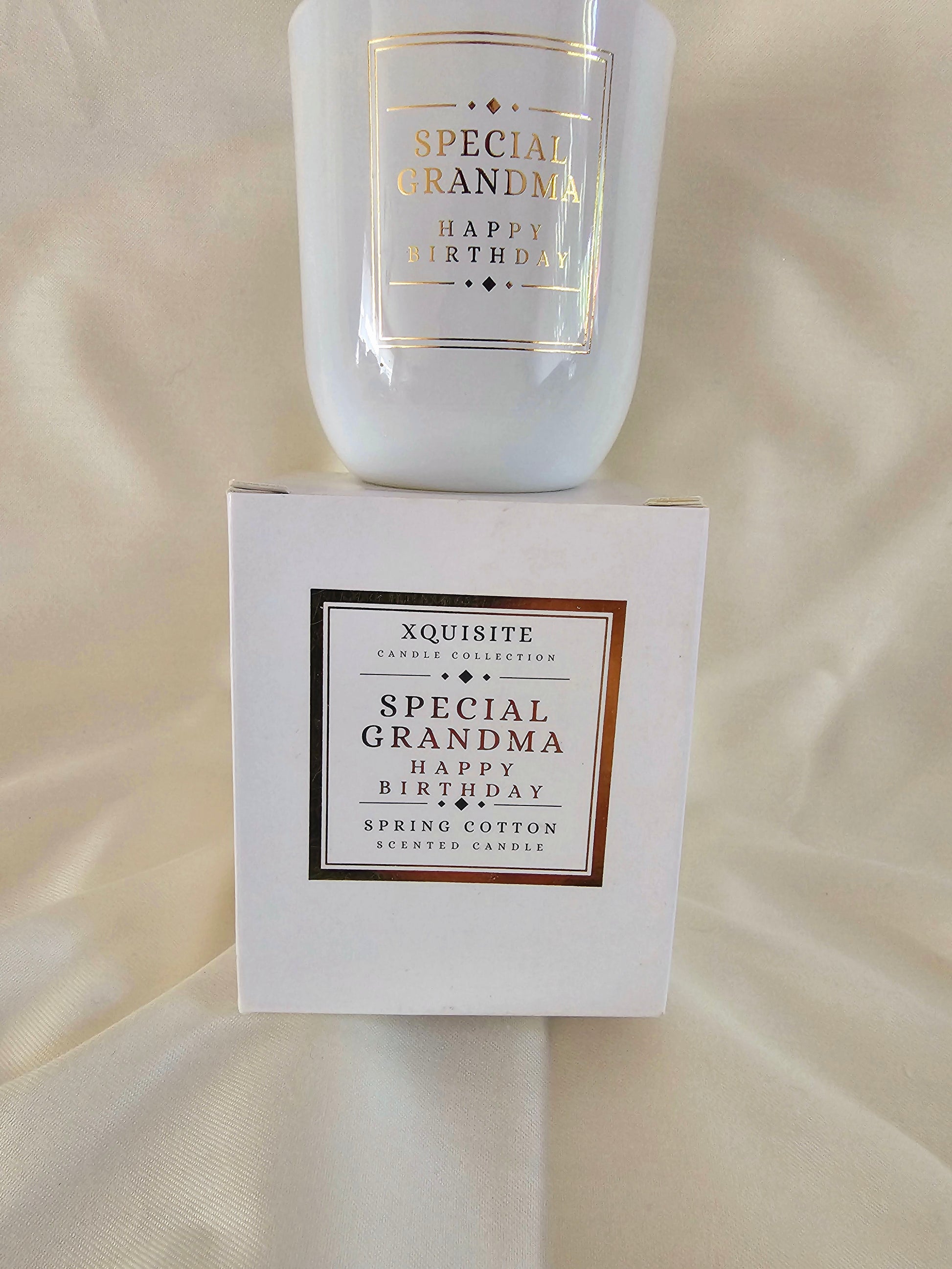Xquisite Spring Cotton Scented Candle Glass Jar Happy Birthday grandma